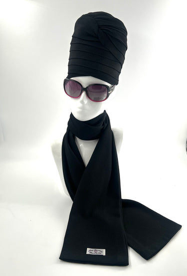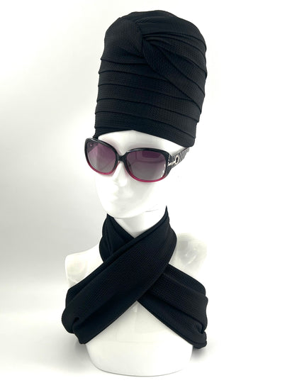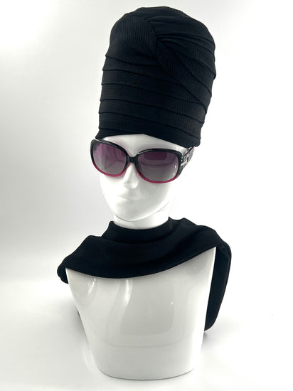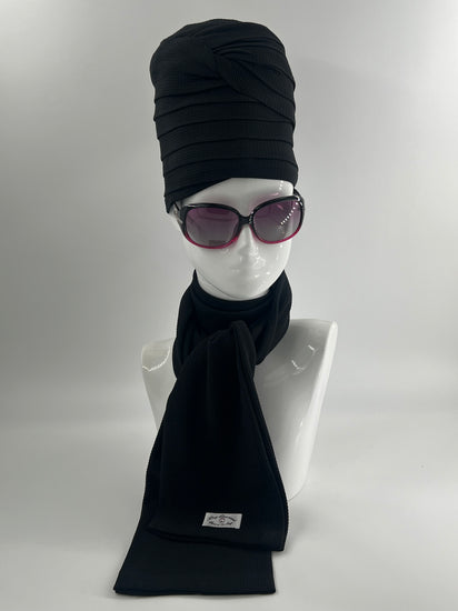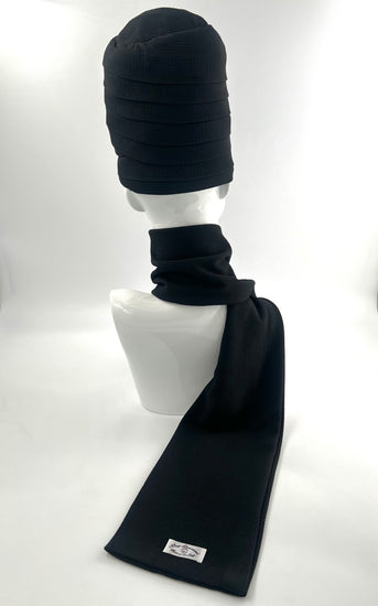 038-Black Crown & scarf set w/silky satin inner lining. One of a kind. Just what you've been waiting for. Discover the perfect Couture Crown for your everyday attire wear it proudly. Winter, Fall & Spring Season